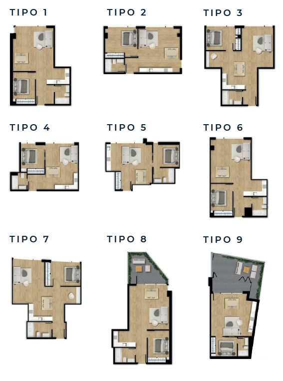 Distribuciones optimizadas y bien diseñadas, con máximo aprovechamiento de luz natural. Uso de materiales de alta calidad en todos los espacios.